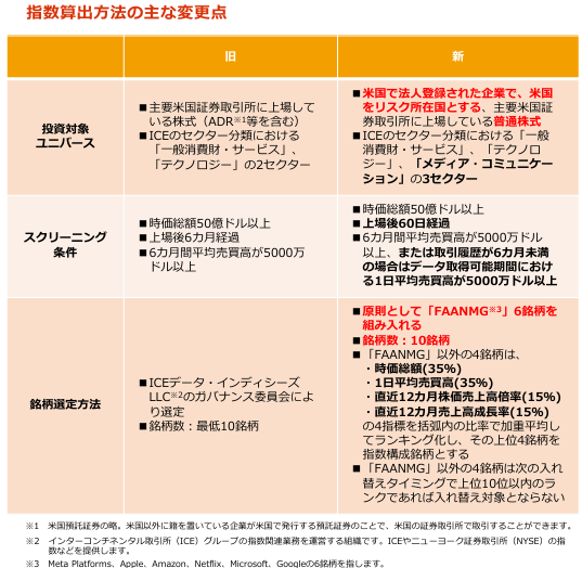 FANG+では、2022年12月の銘柄入れ替え時に指数算出ルールの変更が行われました。