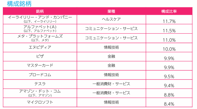 引用元:ニッセイアセットマネジメント株式会社 ニッセイ・S米国グロース株式メガ10インデックスファンド 構成銘柄の見直し・リバランスのご報告