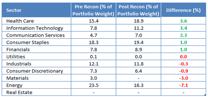 • ヘルスケアが増加、エネルギーが減少するなどセクター比率に大きな変化