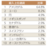 国別の構成比率とほぼリンクしますが、通貨の比率としてはこのようになっています。