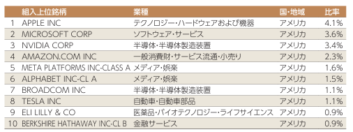 オルカンを100万円買うと、アップルやマイクロソフトの株を4万円分買っていることになるわけですね。